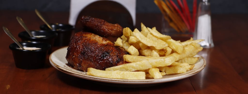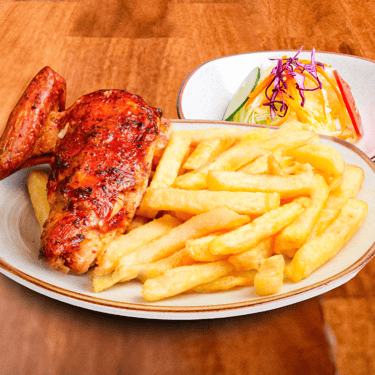 1/4 de pollo a la leña + papas fritas + ensalada