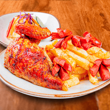 1/4 pollo + chorizo + papas fritas + ensalada