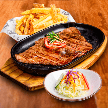 Angus entrecot 250gr acompañado con papas nativas y ensalada