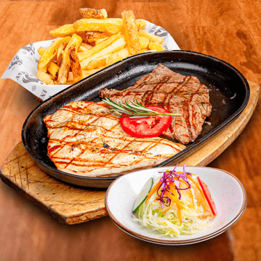 Lomo fino a la parrilla + papas nativas + ensalada